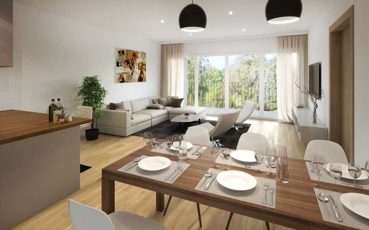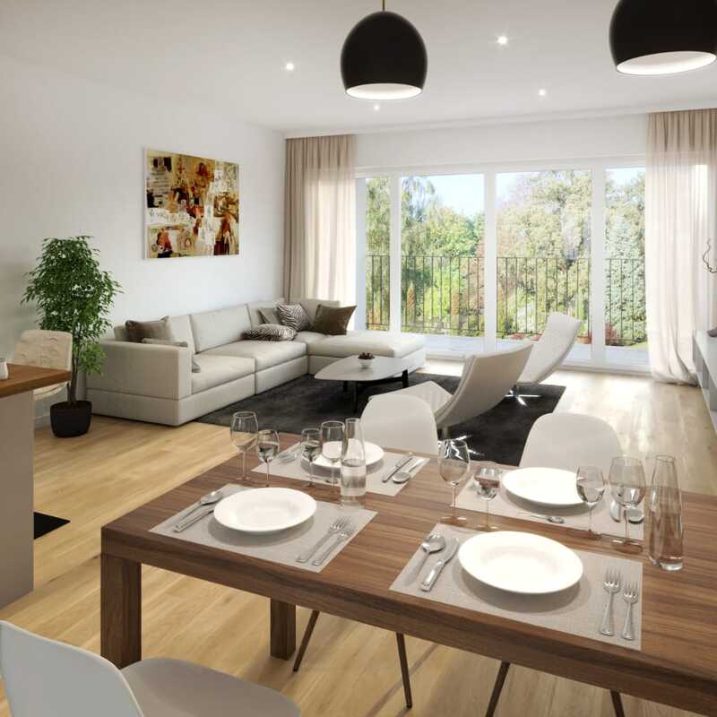 - Offener Wohn- und Essbereich: Helles Raumgefühl durch große Fensterflächen, direkter Zugang zu Balkon/Terrasse